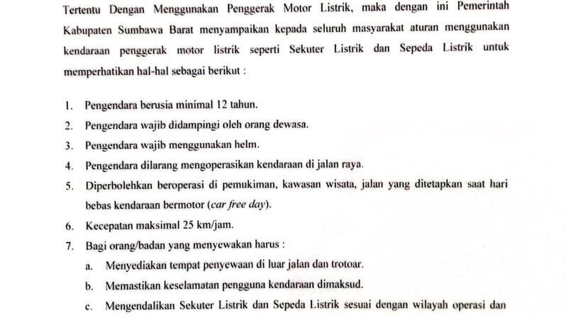 Bupati KSB Beri Himbauan Aturan Penggunaan Sepeda Listrik