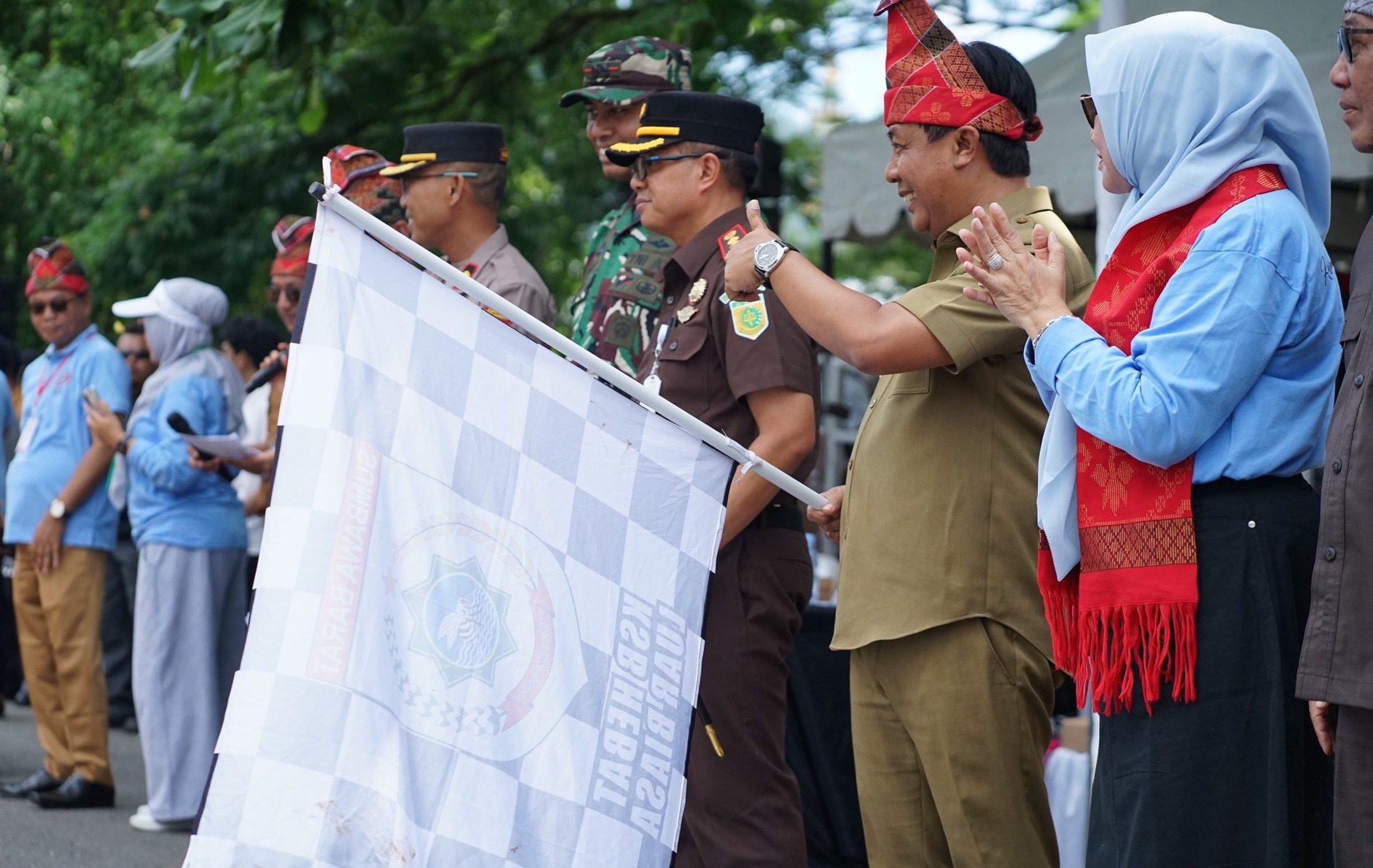 Usai sambutan, Bupati secara resmi melepas peserta karnaval sebagai tanda dimulainya semua rangkaian kegiatan Carnaval yang menjadi bagian perayaan Harla KSB ke-22. (M-02)