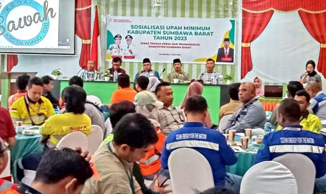 Media KSB-Taliwang, – Pemerintah Kabupaten Sumbawa Barat (KSB) melalui Dinas Tenaga Kerja dan Transmigrasi (Disnakertrans) melaksanakan sosialisasi tentang Upah Minimum Kabupaten (UMK) untuk tahun 2023.